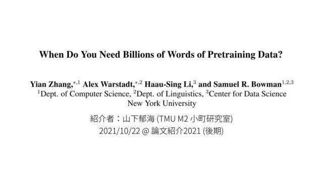 通常の probing では性能しか⾒ていない,という問題点を解消すること を⽬指した probing ⼿法 (classifier を学習するのは通常と同じ) Ø 簡単に⾔うと,性能を達成するために必要なデータ量も勘案してスコア をつけている (データ量を横軸,loss を縦軸にとった際の学習曲線の AUC を⾒ている) Ø ラベル y を⼊⼒ x を圧縮した姿だと捉えて伝送コストを考える ü Data codelength: 最終的なモデルの質を⽰す,loss を⽤いる ü Model codelength: 表現からラベルを抽出するための労⼒を⽰す