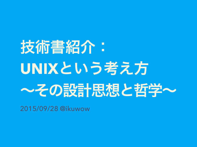 ٕज़ॻհɿ UNIXͱ͍͏ߟ͑ํ ʙͦͷઃܭࢥͱֶʙ 2015/09/28 @ikuwow