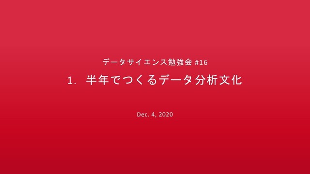 データサイエンス勉強会 #16 1.半年でつくるデータ分析文化 Dec. 4, 2020