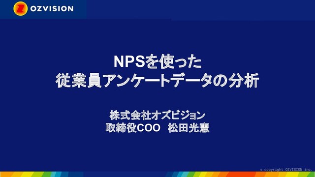© copyright OZVISION inc. NPSを使った 従業員アンケートデータの分析 株式会社オズビジョン 取締役COO 松田光憲