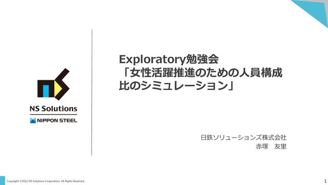 Copyright ©2022 NS Solutions Corporation. All Rights Reserved. 1 Exploratory勉強会
