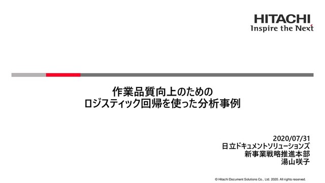 2020/07/31 日立ドキュメントソリューションズ 新事業戦略推進本部 湯山咲子 作業品質向上のための ロジスティック回帰を使った分析事例