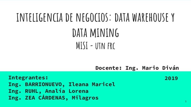 utn frc Integrantes: Ing. BARRIONUEVO, Ileana Maricel Ing. RUHL, Analía Lorena Ing. ZEA CÁRDENAS, Milagros 1 Docente: Ing. Mario Diván 2019