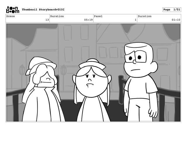 Scene 13 Duration 05:19 Panel 1 Duration 01:10 Thumbnail Storyboardv01IC