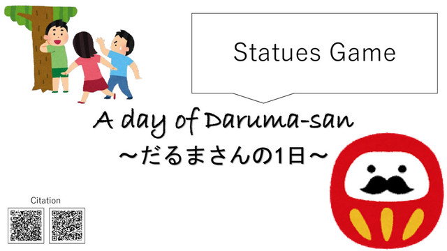 other players with his eyes shut. “It” says “Daruma-san ga 〇〇〇〇〇" quickly, and then turns around as quickly as possible, opening his eyes. While "it" is saying the phrase, the other players move closer to him. Just before "it" turns around, the players must do what “it” said.