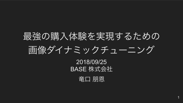 ࠷ڧͷߪೖମݧΛ࣮ݱ͢ΔͨΊͷ ը૾μΠφϛοΫνϡʔχϯά 2018/09/25 BASE גࣜձࣾ ཽޱ ๎Ը !1