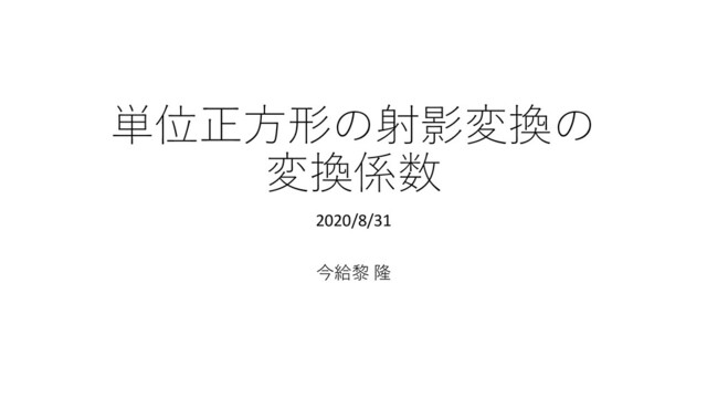単位正方形の射影変換の 変換係数 2020/8/31 今給黎 隆