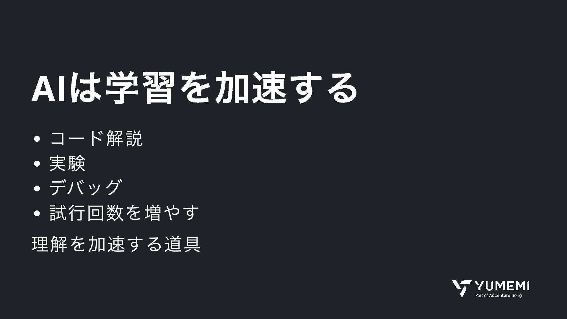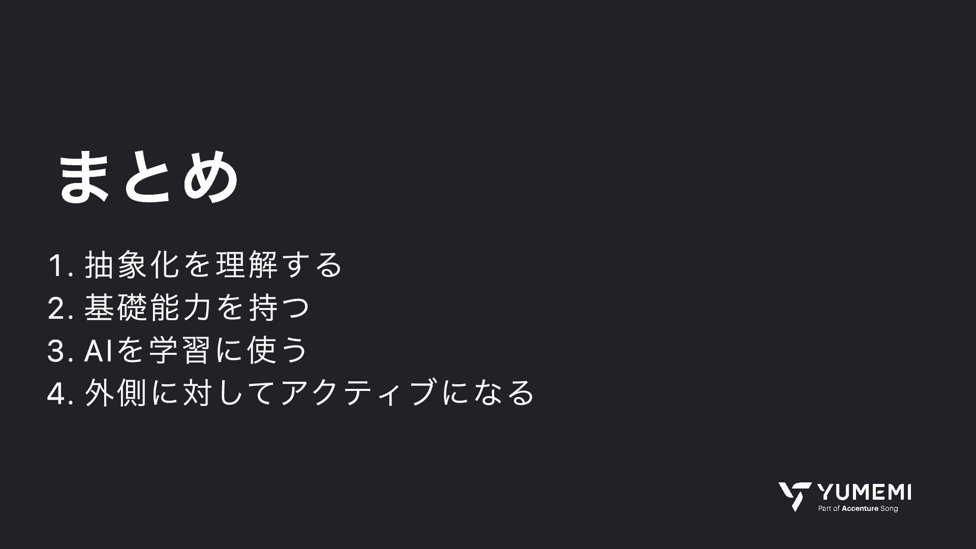 正直会社でも、AIの利用が必須だとか、研修だとか、AI使わないと昇進させないだとかがあるがそんなのはナンセンスで、会社の規模もあるからしょうがないけど本来は使ってる人に賞賛が向かうようにするべき、