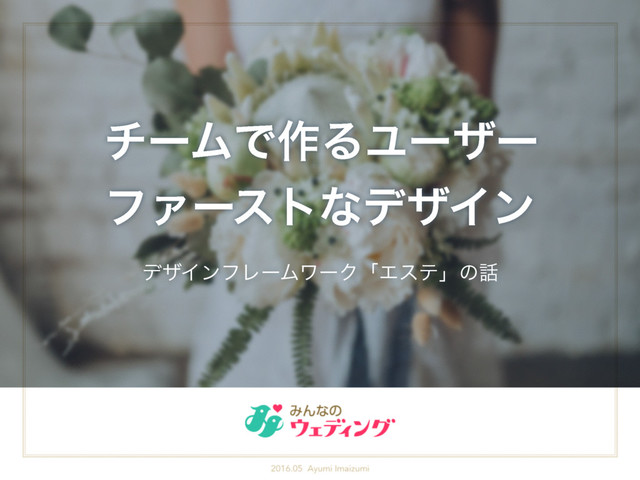 みんなのウェディングで開催した『デザイナーLT&交流会(freee×BASE×みんなのウェディング)』の発表スライドです。 デザインフレームワーク「エステ」の話を中心に、みんなのウェディングのサービス開発チームのご紹介をします。