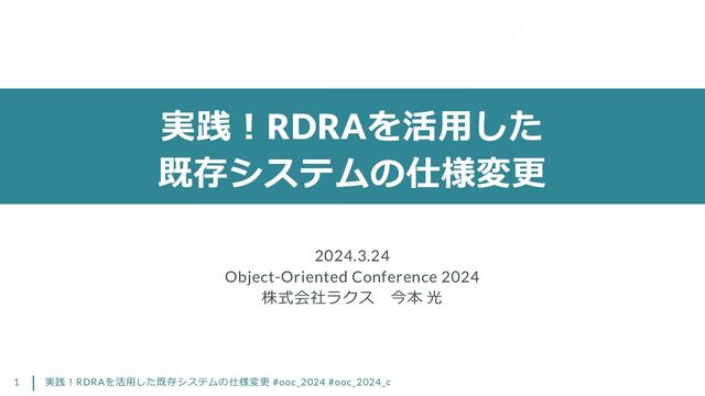 実践!RDRAを活用した 既存システムの仕様変更 2024.3.24 Object-Oriented Conference 2024 株式会社ラクス 今本 光 実践!RDRAを活用した既存システムの仕様変更 #ooc_2024