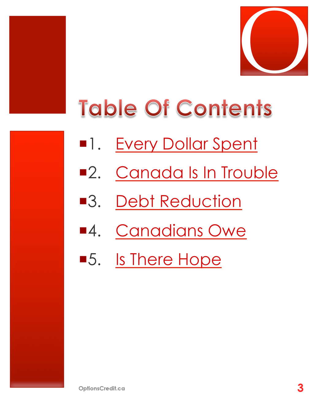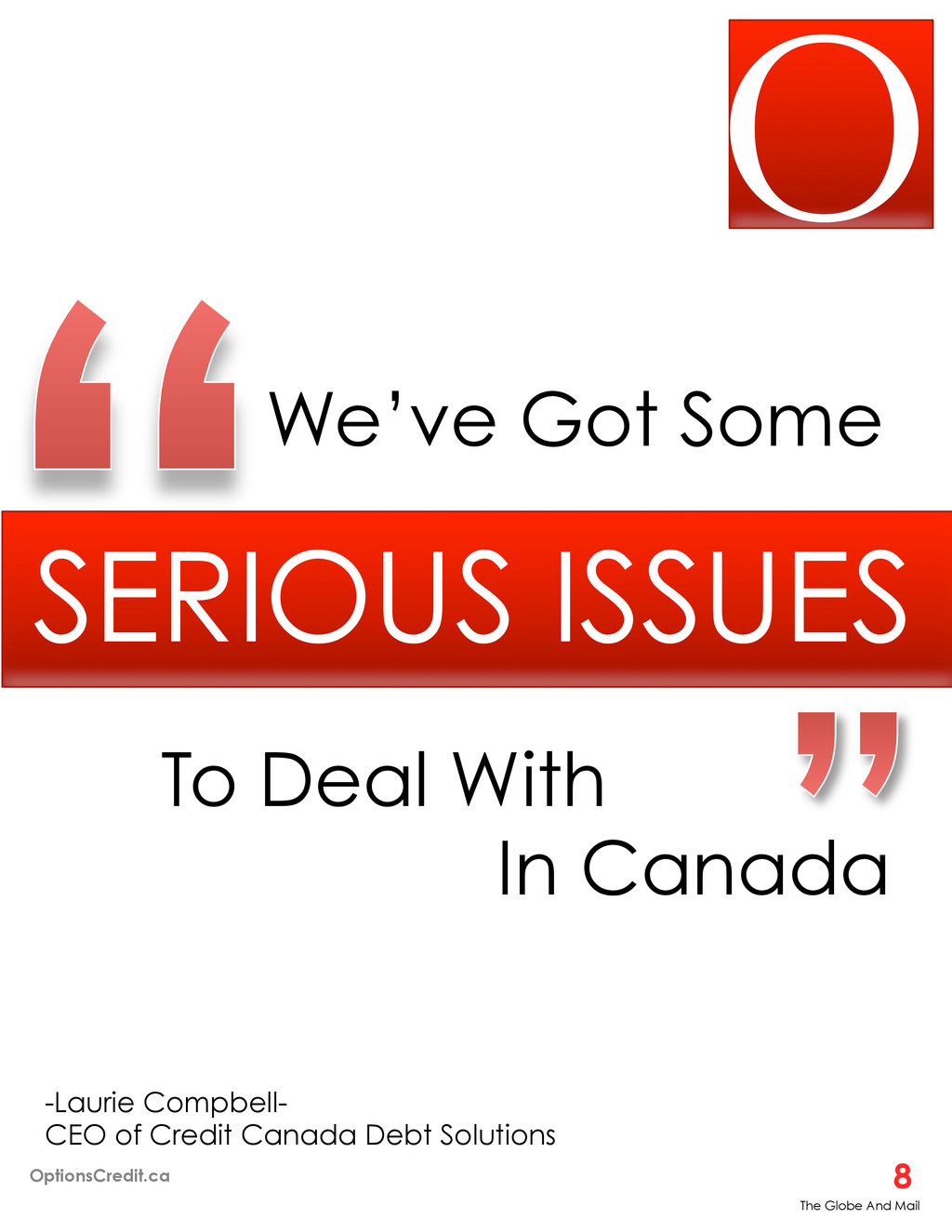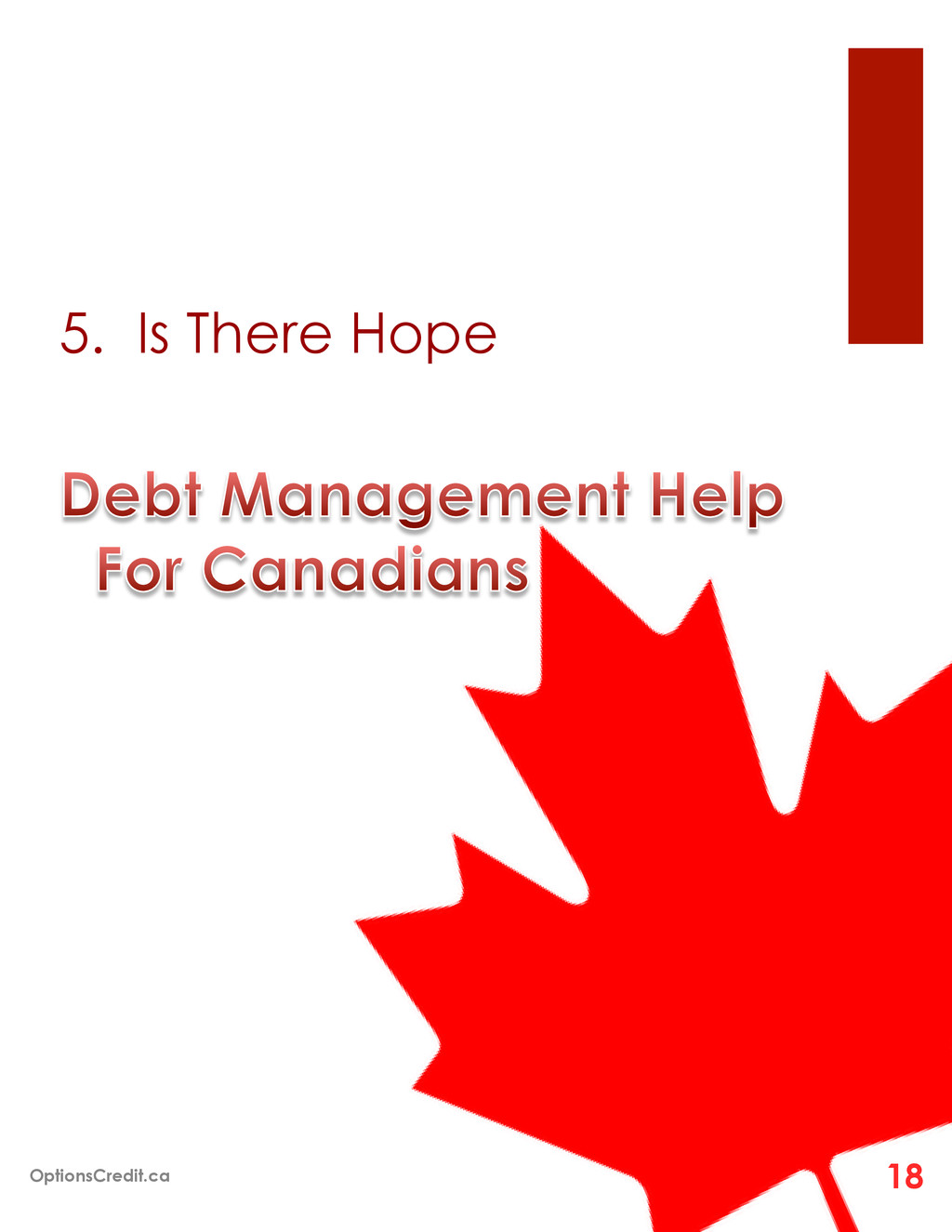 your income ¡ Is it hard to make the minimum monthly payment on your debts ¡ Are you scared to know how much you owe in total ¡ Are you using credit cards for daily expenses ¡ Are you receiving creditor calls for not making bill payments ¡ Are you using one credit card to pay off another ¡ Why are creditors not increasing your credit limit ¡ Have you applied for cash advances 1 Million Other Canadians Do… OptionsCredit.ca 19