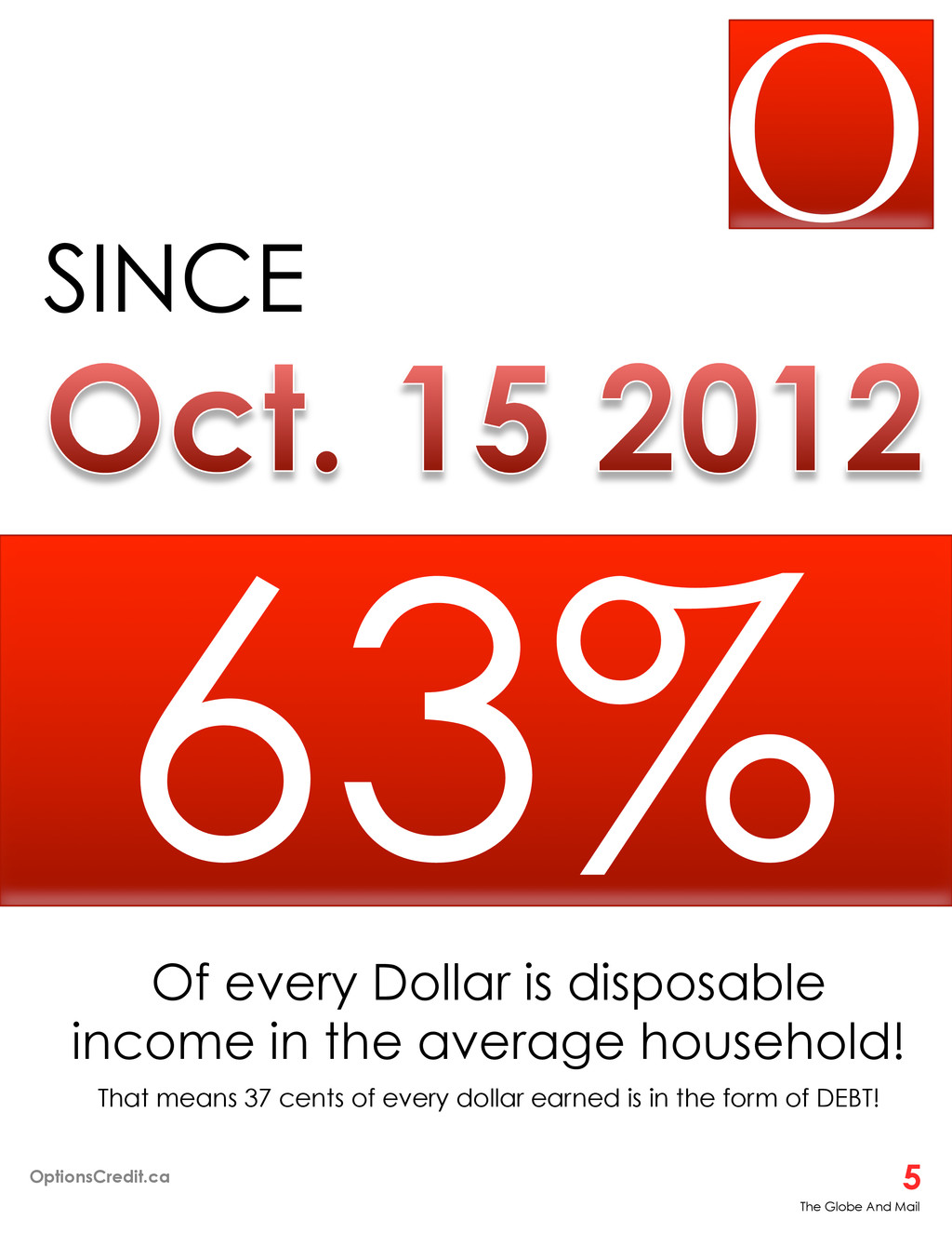 bust. This could result in a “double blow” as the global economy is in holding ¡ Some economists fret about the similarities to United States, where excessive debt-income ratios were a prelude to a housing crash ¡ More than half of major markets witnessed sales drop 10% ¡ The average national price increased over 1% from last year ¡ The ratio of debt to income marked at 163.4% half way through the year. That’s a raise of almost 2 points from the end of last year. IN DEBT LEVELS The Globe And Mail OptionsCredit.ca 6