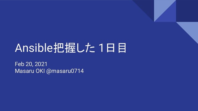 Ansible把握した 1日目 Feb 20, 2021 Masaru OKI @masaru0714