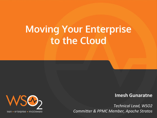 existing applications • Identifying the right service model • Identifying the right deployment model • Evaluating key features in cloud providers • Implementing a POC with WSO2 Cloud • Deploying applications in cloud 4