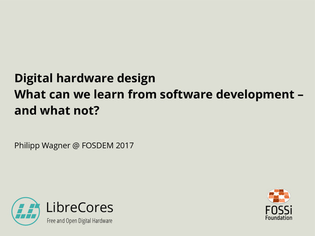 Presented at FOSDEM 2017 in the EDA Devroom.