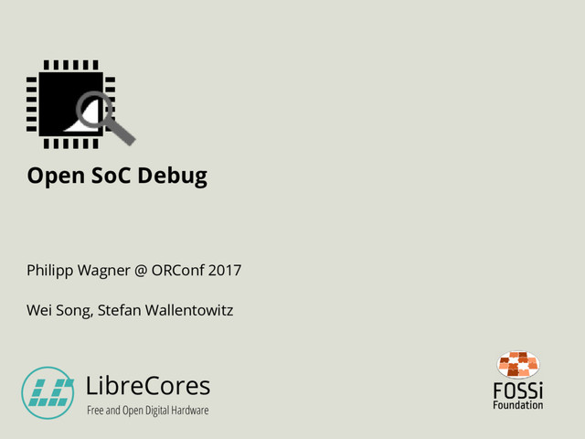 • a spec covering – an extensible debug system architecture – common debug modules – a host-side software programming interface (API) for debug tools • a reference implementation • a collaboration between TUM (OPTiMSoC) and Univ. Cambridge (lowRISC)