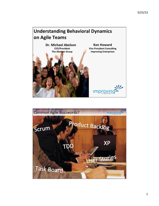 Analysis Business Development Analysis Quality Assurance Development Project Management Business Management Natural tendency: Avoid conflict; Hide, ignore it. BeYer Approach: Confront conflict and cul=vate its yield. Building a Dream Team 1992 2002