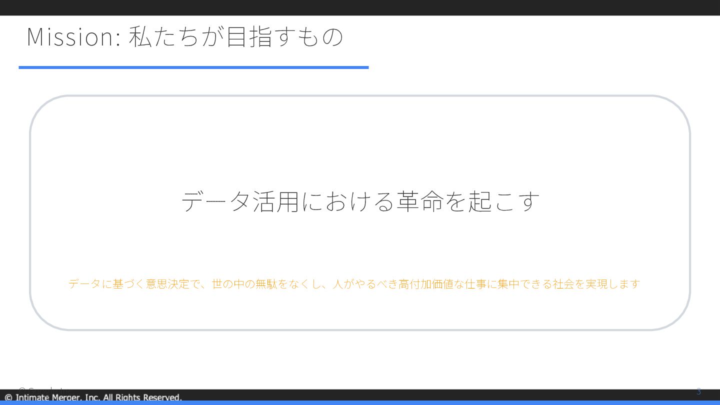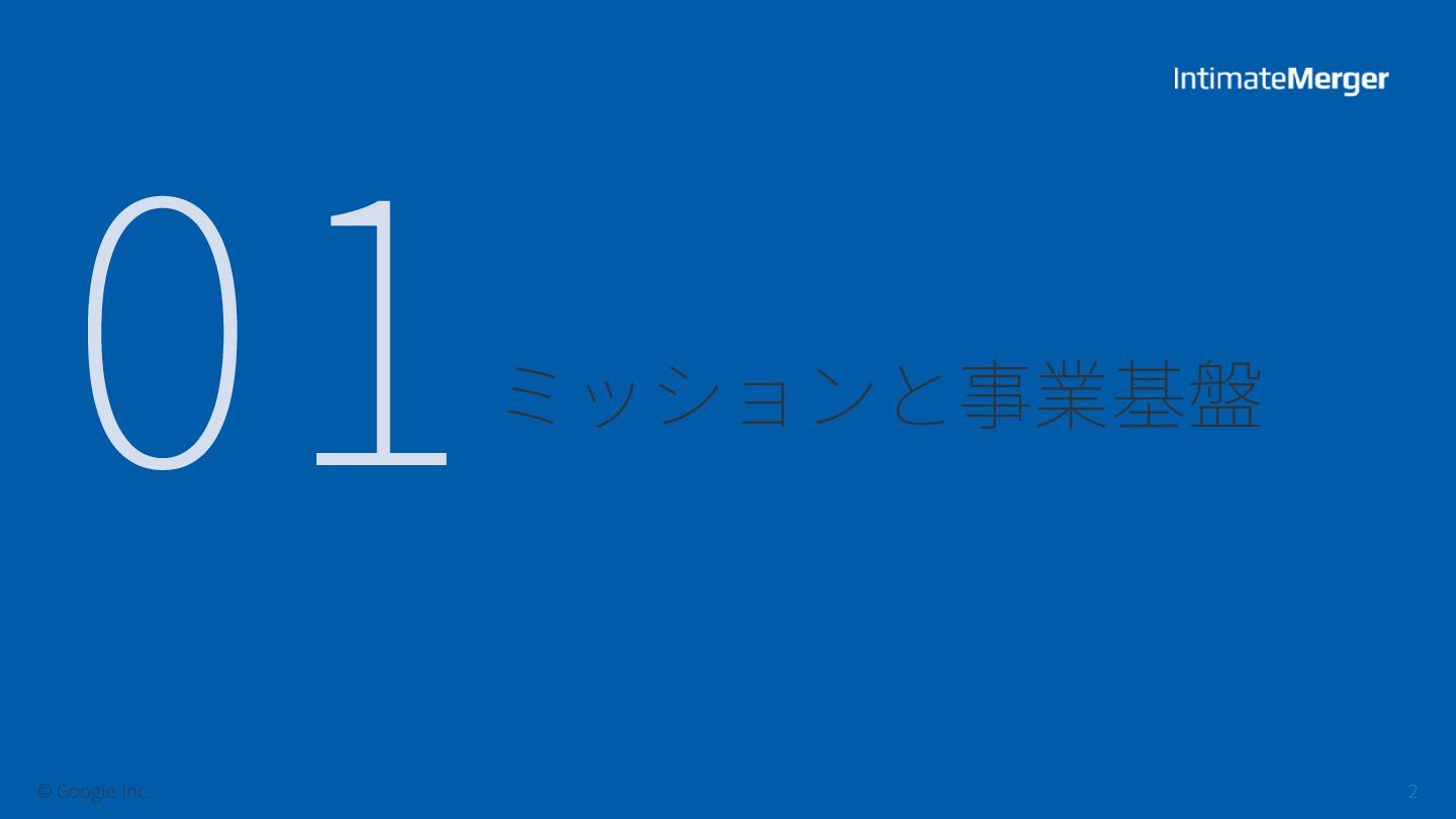 Mission: 私たちが目指すもの データ活用における革命を起こす データに基づく意思決定で、世の中の無駄をなくし、人がやるべき高付加価値な仕事に集中できる社会を実現します © Google Inc. 3