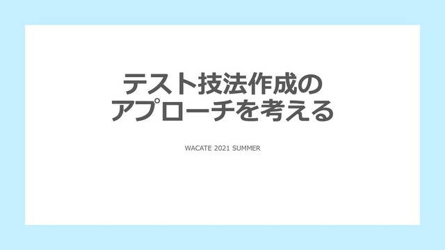 テスト技法作成の アプローチを考える WACATE 2021 SUMMER