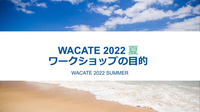 WACATE 2022 SUMMER WACATE 2022 夏 ワークショップの⽬的