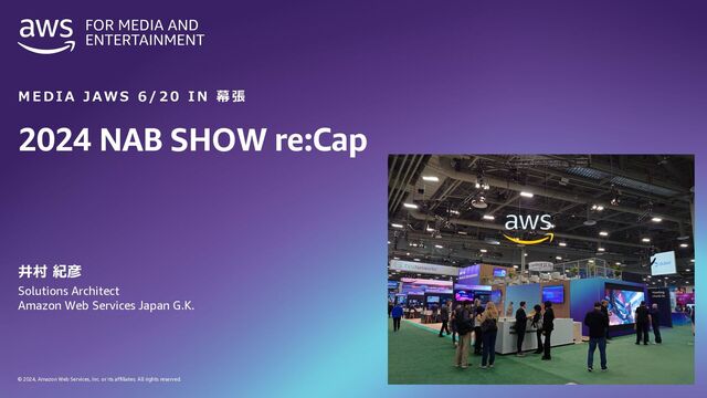 rights reserved. コンテンツローカライズ https://aws.amazon.com/jp/media/nab24-demos/nab24-demos-media-supply-chain-utilizing-ai-and-deepdub-go-to-create-end-to-end-localizations-at-scale/ 19 DeepDub Go 様々な⾔語でアセットのローカライズ 1. AI が⽣成した⾳声でゼロショット⾳声リファレンス を作成 2. 複数の⾔語に翻訳して、マーケットリーチを拡⼤ 3. ⾼度なエモーショナル・プロンプティングによる AI ⽣成の本格的な⾳声作成 4. プロ仕様の共同編集環境 「Welcome to Cancun, Mexico’s jewel of the Caribbean」の⼀⽂を読む だけでその⼈の声を学習