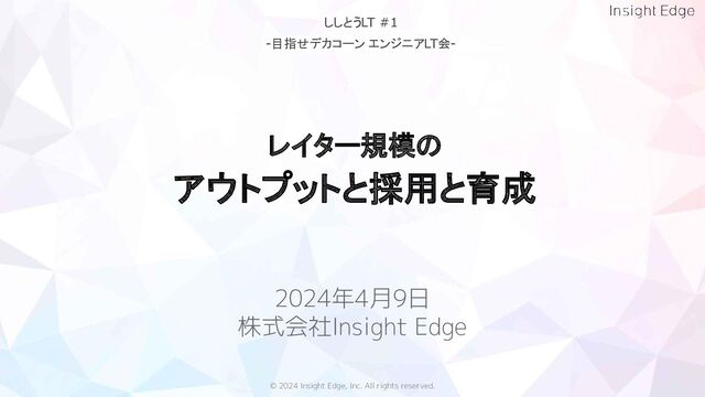 -目指せデカコーン エンジニアLT会- 2024年4月9日 株式会社Insight Edge レイター規模の アウトプットと採用と育成