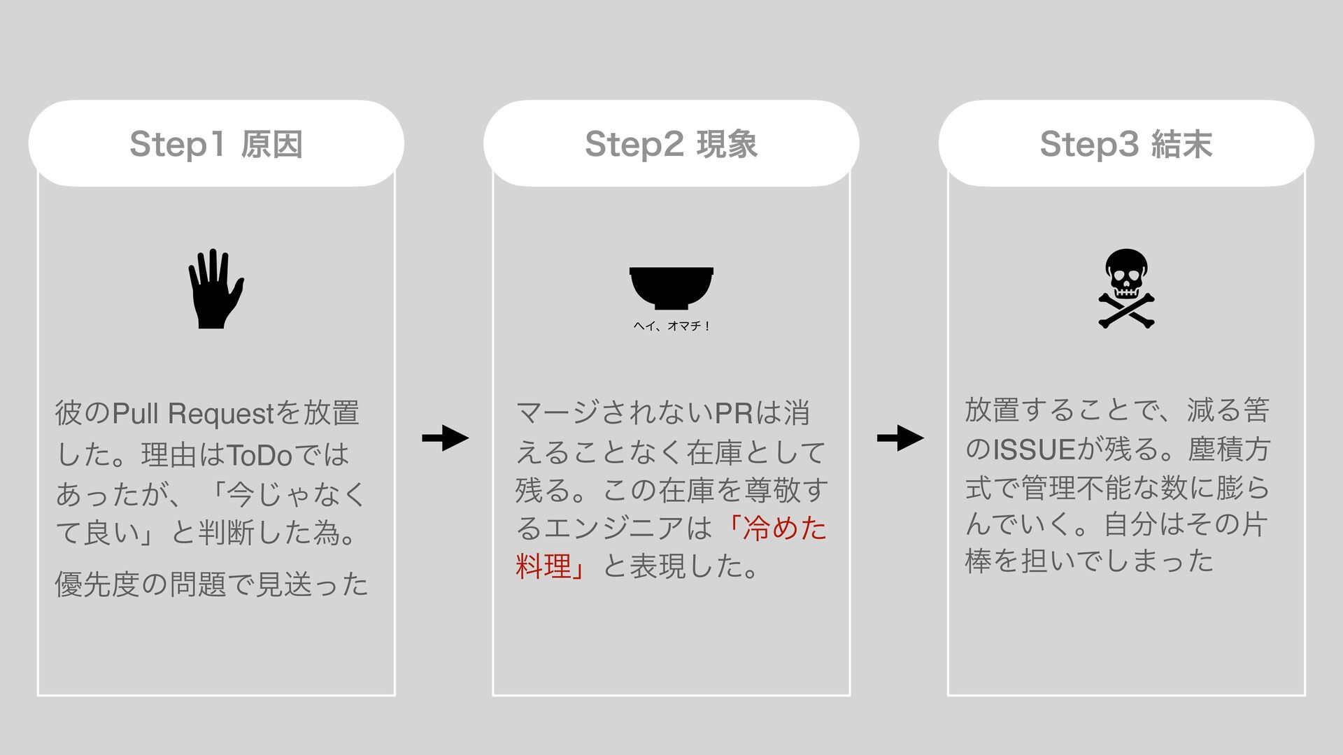 ൴ͷPull RequestΛ์ஔ ͨ͠ɻཧ༝ToDoͰ ͕͋ͬͨɺʮࠓ͡Όͳ͘ ͯྑ͍ʯͱஅͨ͠ҝɻ ༏ઌͷͰݟૹͬͨ Ϛʔδ͞Εͳ͍PRফ ͑Δ͜ͱͳ͘ࡏݿͱͯ͠ Δɻ͜ͷࡏݿΛଚܟ͢ ΔΤϯδχΞʮྫྷΊͨ