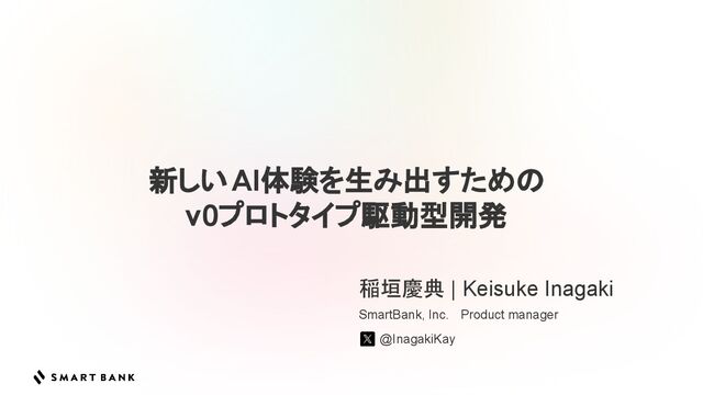 新しいAI体験を生み出すための v0プロトタイプ駆動型開発 SmartBank, Inc. Product manager 稲垣慶典 | Keisuke Inagaki