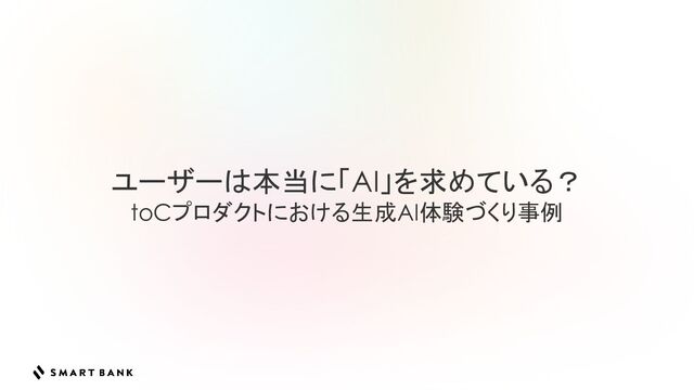 toCプロダクトで向き合っている問い 生成AI体験を”一般消費者に”どう届けるか 世の中のマスにとって生成AI体験は受け入れやすいものなのだろうか 生成AI! 生成AI!