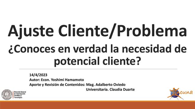 veces • Ir al lugar donde el cliente está y verificar la actividad del cliente o trabajar allí más de 100 veces (Gemchi Gembutsu) • Averiguar a fondo sobre competidores y alternativas • Vender productos parecidos o de competidores que puedan solucionar el problema • Buscar la necesidad del cliente trabajando como un asesor • Hablar sobre tu idea con tus compañeros o tus asesores Gemchi Gembutsu es un término importante de “Lean Manufacturing de TOYOTA” Significa <Ir al lugar del problema y verlo por nosotros mismos>. Así las decisiones de negocio pueden basarse en un conocimiento de primera mano