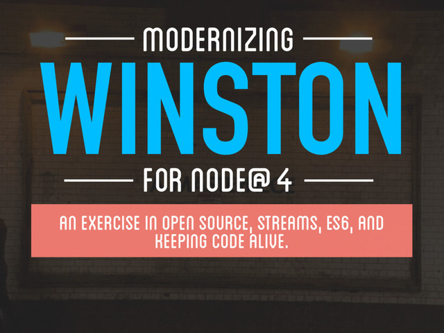 An Exercise in Open Source, streams, ES6, and keeping code alive. Presented at Node.js Interactive 2015 in Portland, OR.