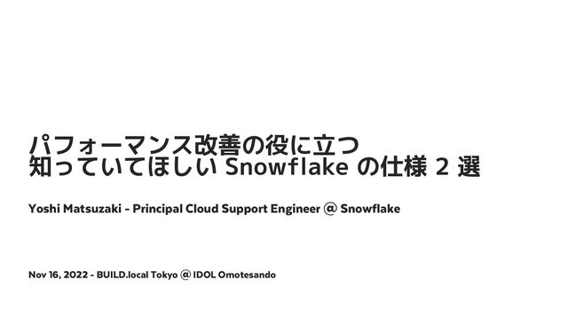 100 列 * 1,000,000 行 = 1 億値のテーブル 問題 1: カラム数が多いテーブルのメタデータ create or replace transient table t_wide (c1 int, c2 int, ... , c9999 int, c10000 int) as select seq4(), seq4(), ... , seq4(), seq4() from table(generator(rowcount => 10000)); create or replace transient table t_deep (c1 int, c2 int, ... , c99 int, c100 int) as select seq4(), seq4(), ... , seq4(), seq4() from table(generator(rowcount => 1000000));