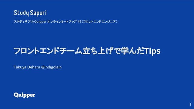 #sapurimeetup スタディサプリ/Quipper オンラインミートアップ #5 フロントエンドチーム立ち上げで学んだTips Takuya Uehara @indigolain スタディサプリ/Quipper オンラインミートアップ