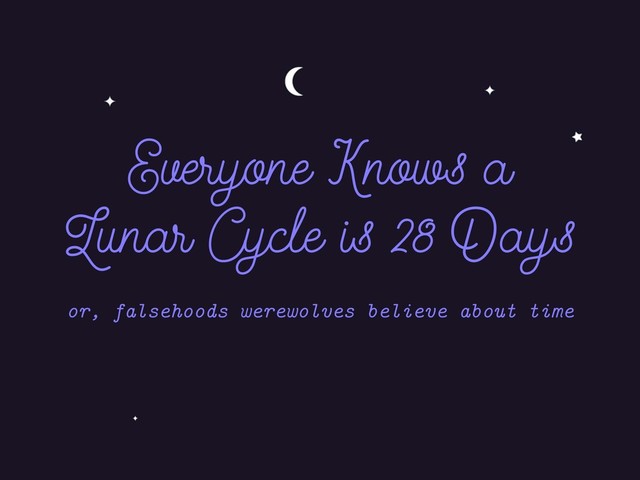 This talk is about how, despite “common knowledge”, lunar cycles are not 28 days long, and in fact lunar cycles don’t have a single numerical length! You’ll hear about several very bad ways to calculate the phases of the moon, why they seemed reasonable at the time, and exactly how it took three years from the time one app shipped to the App Store before the calendar was even arguably correct.