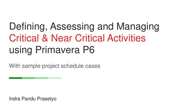 and Why It Is Important 02 Defining Multiple Critical Activities in Primavera P6 03 Assessing Critical Activities Reliability 04 Managing Critical - Near Critical Activities 05