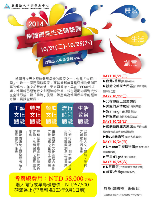 1,500 元 整)。 3. 本參訪團出發後,必須團體行動,因個人關係未能參加全程者概不退 費,個人變更行程所須增加之費用,由個人自行負擔。 4. 團員於本團行程開始後,未能及時參加排定之行程項目或未能及時搭 乘飛機、車、船等交通工具時,視為自願放棄其權利,不得向本中心 要求退費或任何補償。 5. 為適應各地交通時間表或政治變動及其他特殊狀況,基於維護團員之 最高利益,本中心保留本團預定行程表之更動權。 6. 旅行中各航空公司及其他運輸公司自有其個別條例,直接對乘客及行 李負責,行程如有交通延誤、行李損失或意外事件等情事時,悉由各 該運輸公司依其所訂之條例直接對團員負責。 7. 若有臨時狀況,中衛中心保有調整行程之權利。 8. 本行程提供體驗基本型(含美麗城體驗費用、北村傳統工藝體驗費用), 如要加值型體驗,需補中間差額。 9. 本團確定成行後,若學員於本參訪團行程開始前取消退出者,其退費 辦法如下: (1) 取消通知於本參訪團行程開始前第31日以前到達者,本中心退還考 察總費用90%。 (2) 取消通知於本參訪團行程開始前第21日至第30日以內到達者,本 中心退還考察總費用80%。 (3) 取消通知於本參訪團行程開始前第2日至第20日以內到達者,本中 心退還考察總費用70%。 (4) 取消通知於本參訪團行程開始前1日到達者,本中心退還考察總費 用50%。 (5)取消通知於本參訪團行程開始日或開始後到達或未通知不參加者, 不退還任何費用。