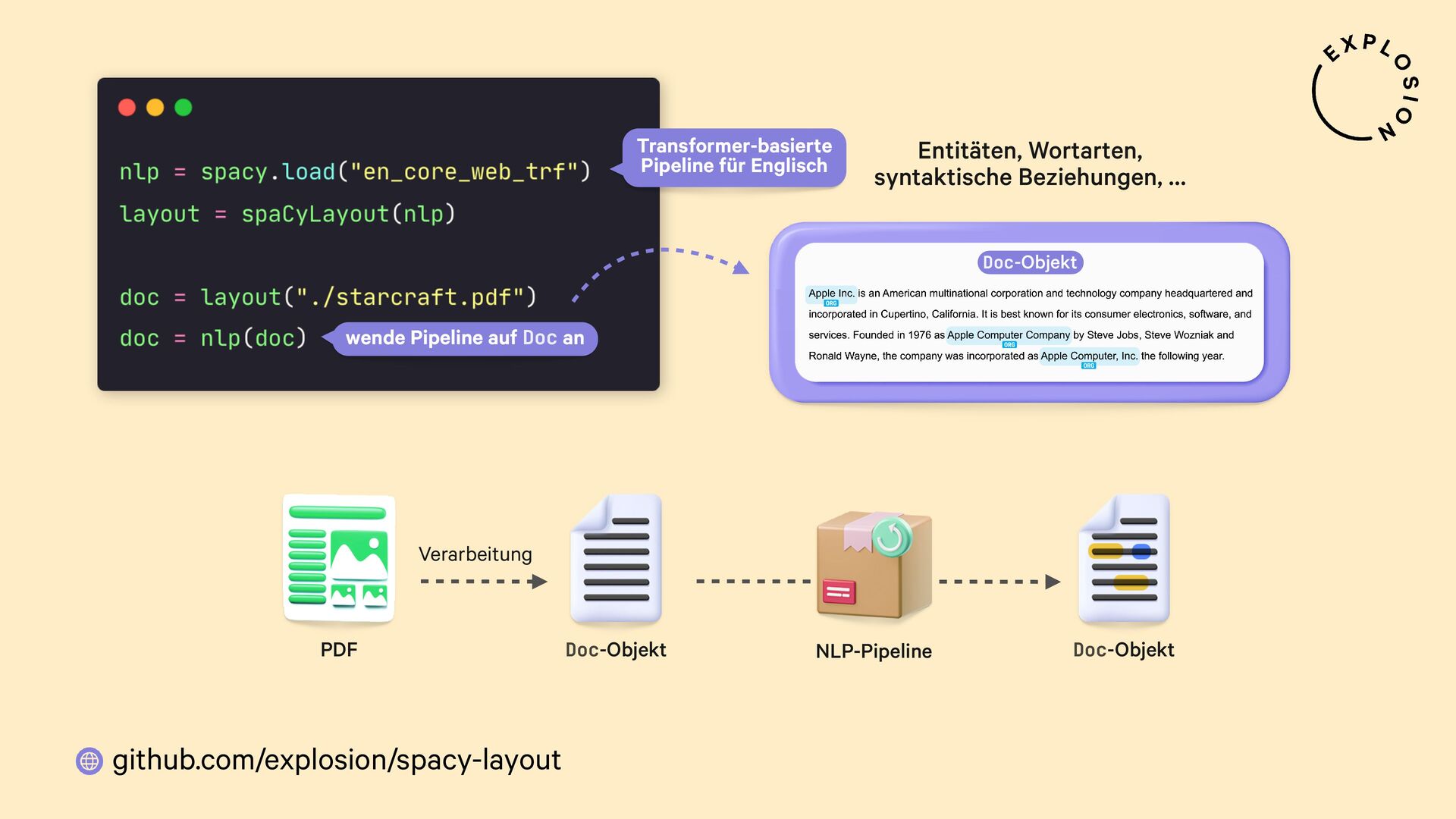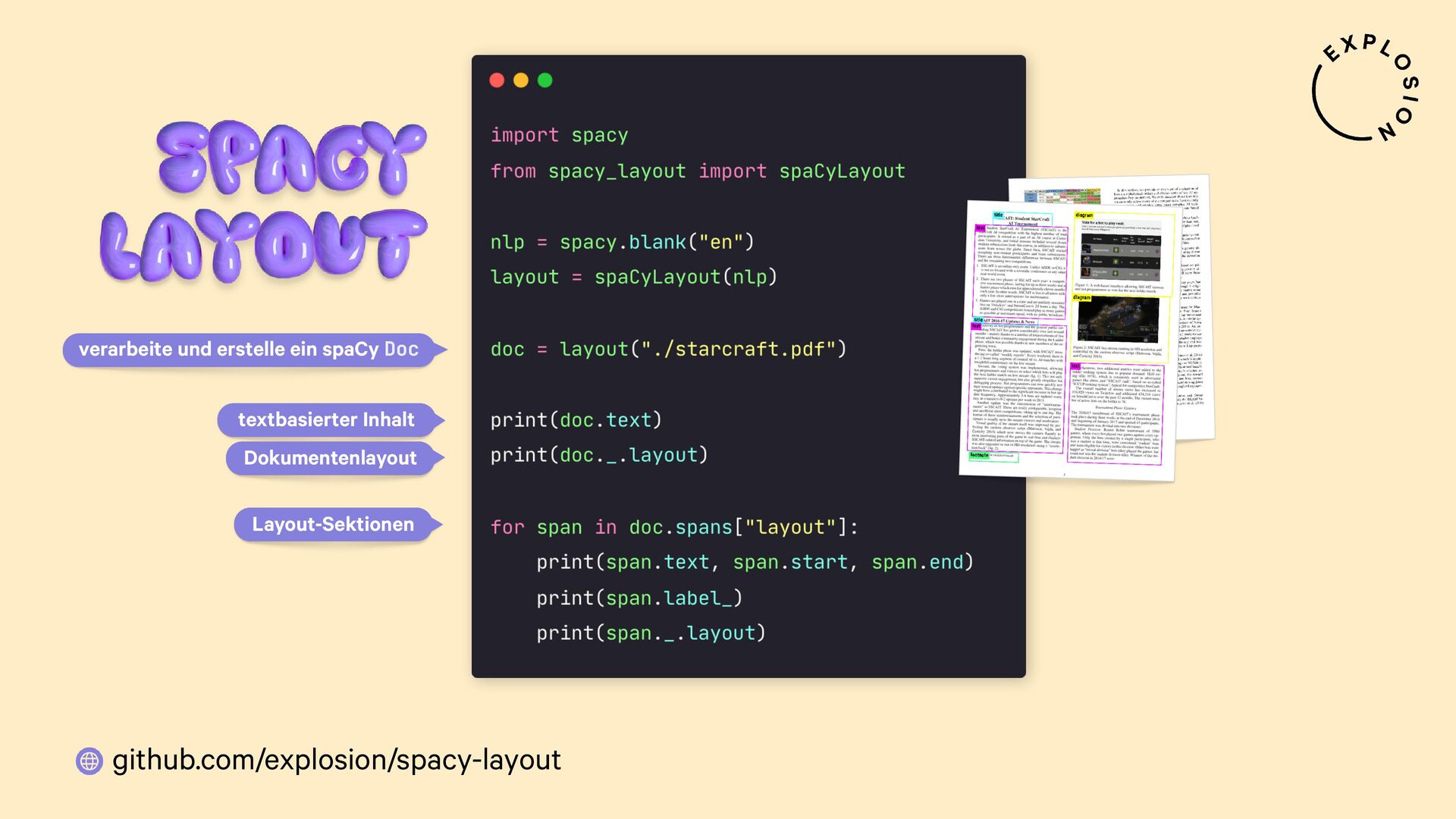 Open-Source-Bibliothek für die Verarbeitung von PDFs mit spaCy