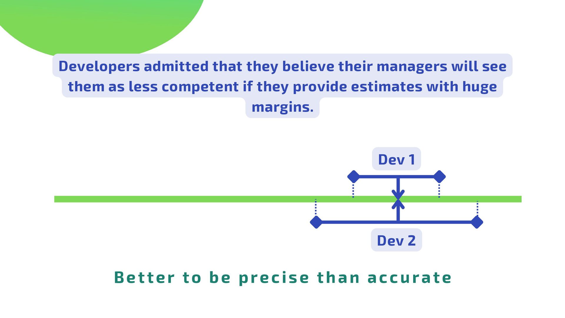as less competent if they provide estimates with huge margins. Dev 2 Dev 1 Better to be precise than accurate
