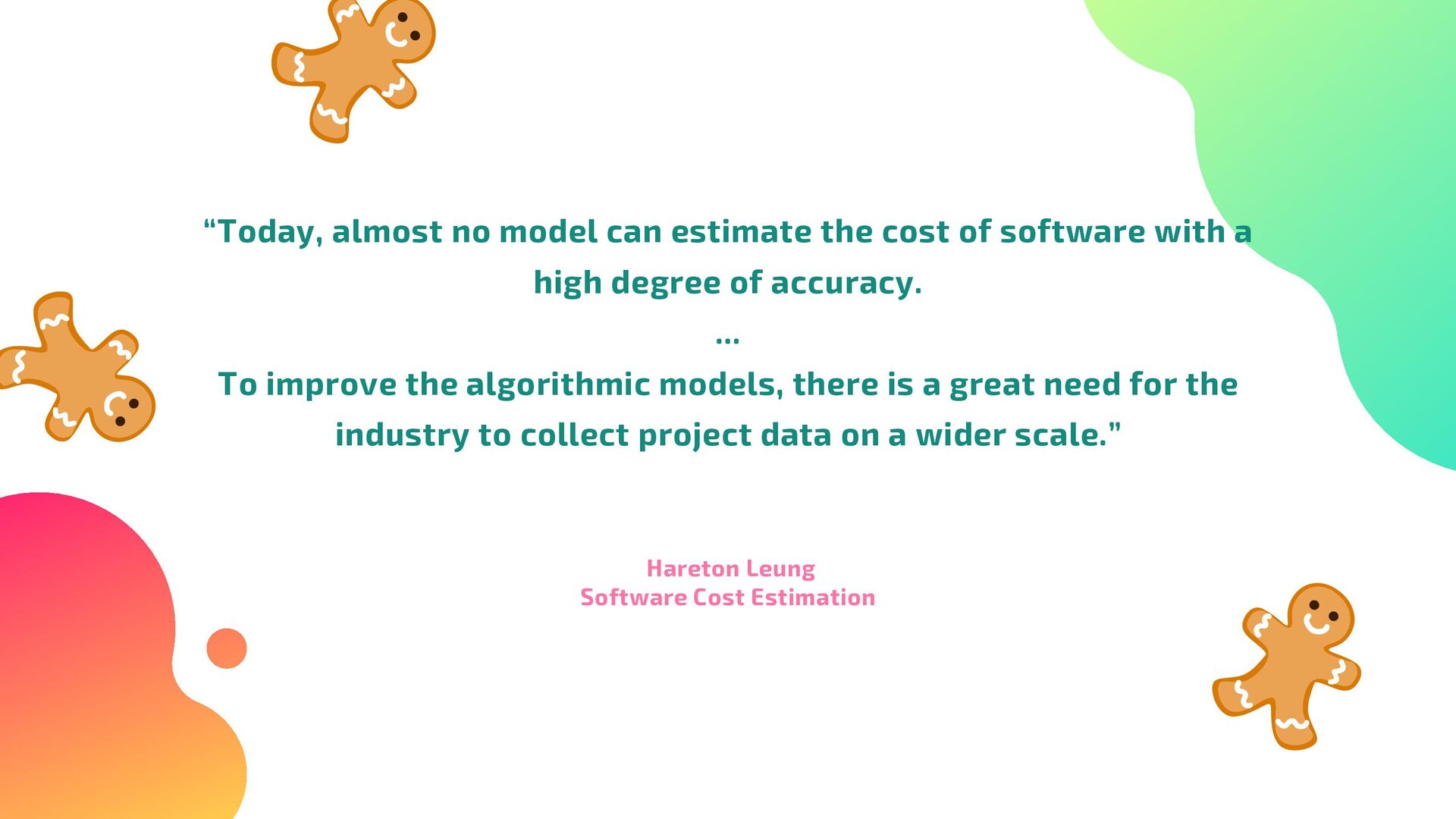 with a high degree of accuracy. ... To improve the algorithmic models, there is a great need for the industry to collect project data on a wider scale.” Hareton Leung Software Cost Estimation