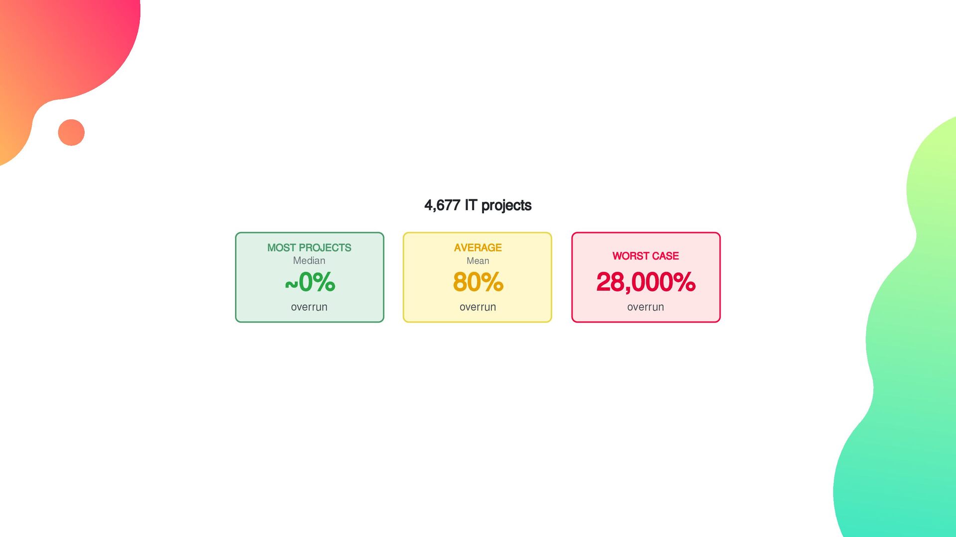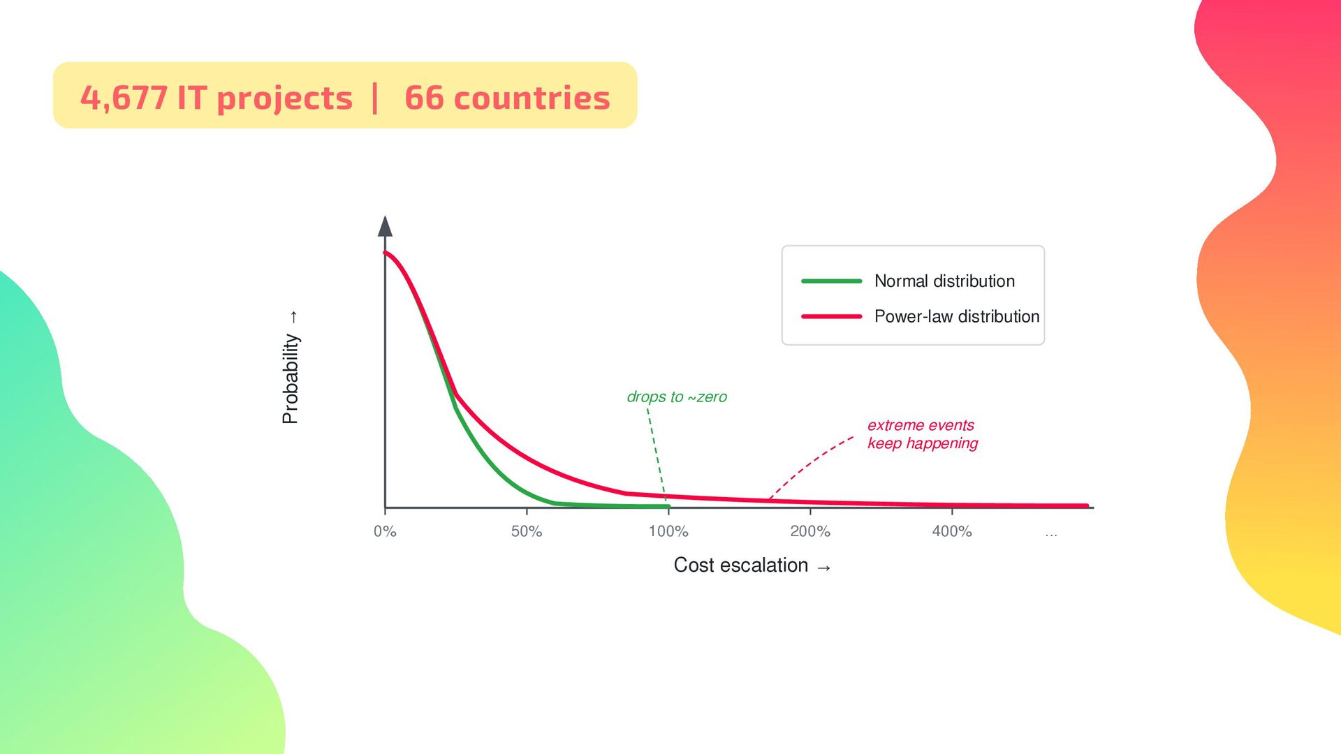 ... Normal distribution Power-law distribution extreme events keep happening drops to ~zero 4,677 IT projects | 66 countries