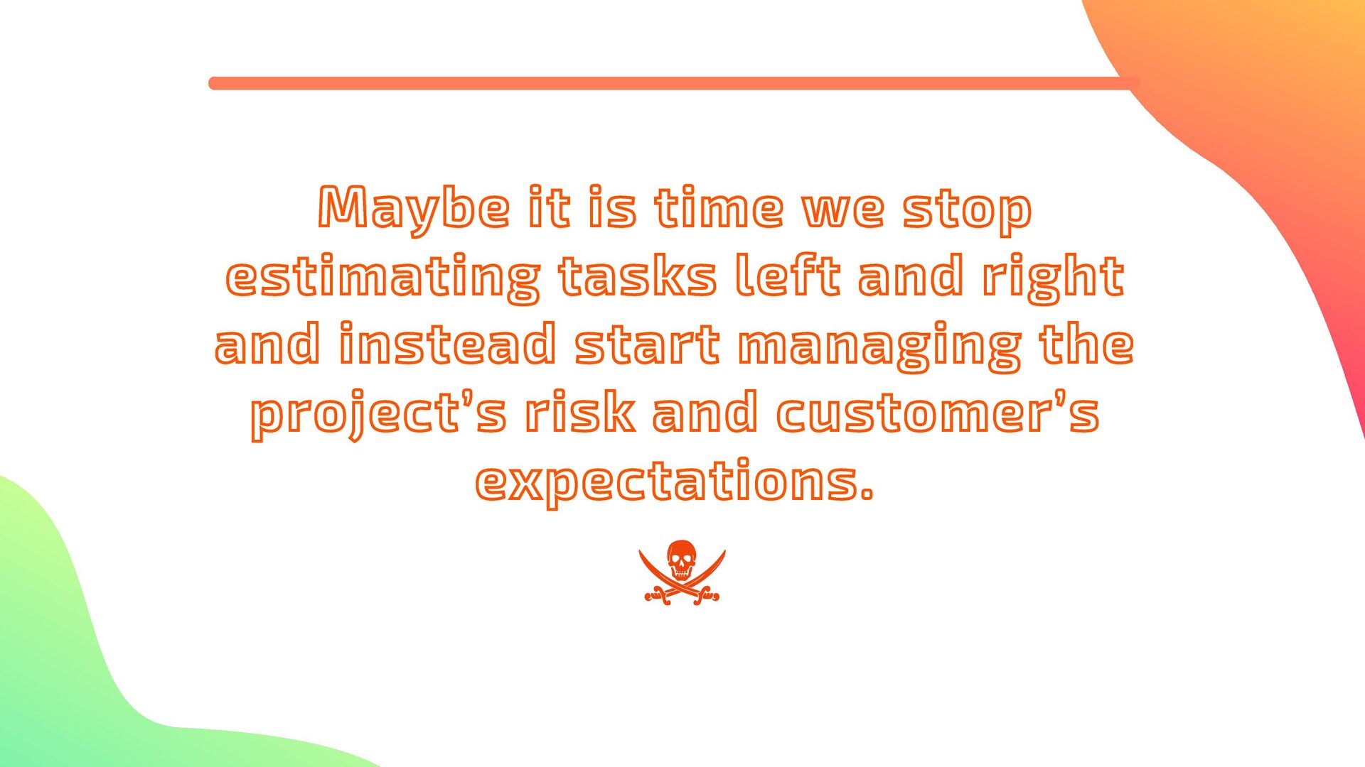we stop estimating tasks left and right estimating tasks left and right and instead start managing the and instead start managing the project’s risk and customer’s project’s risk and customer’s expectations. expectations.