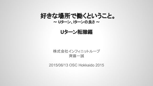 好きな場所で働くということ。 ~ Uターン、Iターンの良さ ~ Uターン転職編 株式会社インフィニットループ 齊藤一誠 2015/06/13 OSC Hokkaido