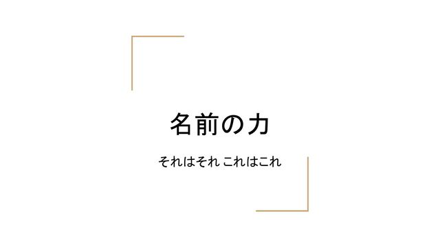 まとめ • 名前には力がある ◦ 名前は境界 ◦ 名前は所属 ◦ 名前は想い ◦