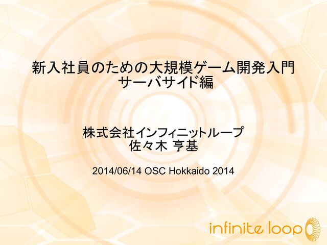 2014/06/14に行われたOSC Hokkaido 2014内で株式会社インフィニットループの佐々木が発表したセミナー、「新入社員のための大規模ゲーム開発入門 サーバサイド編」のスライド資料