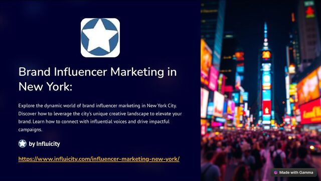 of brand influencer marketing in New York City. Discover how to leverage the city's unique creative landscape to elevate your brand. Learn how to connect with influential voices and drive impactful campaigns. by Influicity https://www.influicity.com/influencer-marketing-new-york/