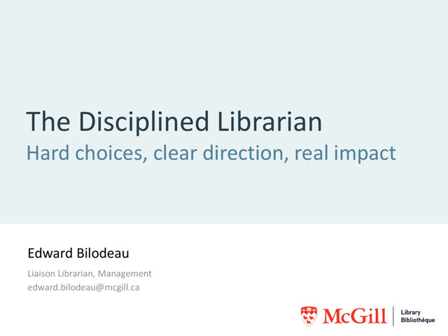 Presented by Ed Bilodeau, President of the SLA Eastern Canada Chapter and Liaison Librarian for Management at McGill University Library, at infoNexus 2016 in Montreal, Canada. Visit http://info-nexus.org/ for more detail.