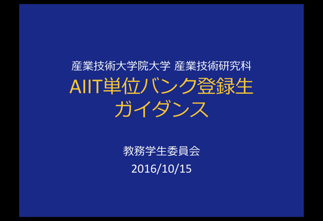産業技術⼤学院⼤学 産業技術研究科 AIIT単位バンク登録⽣ ガイダンス 教務学⽣委員会 2016/10/15