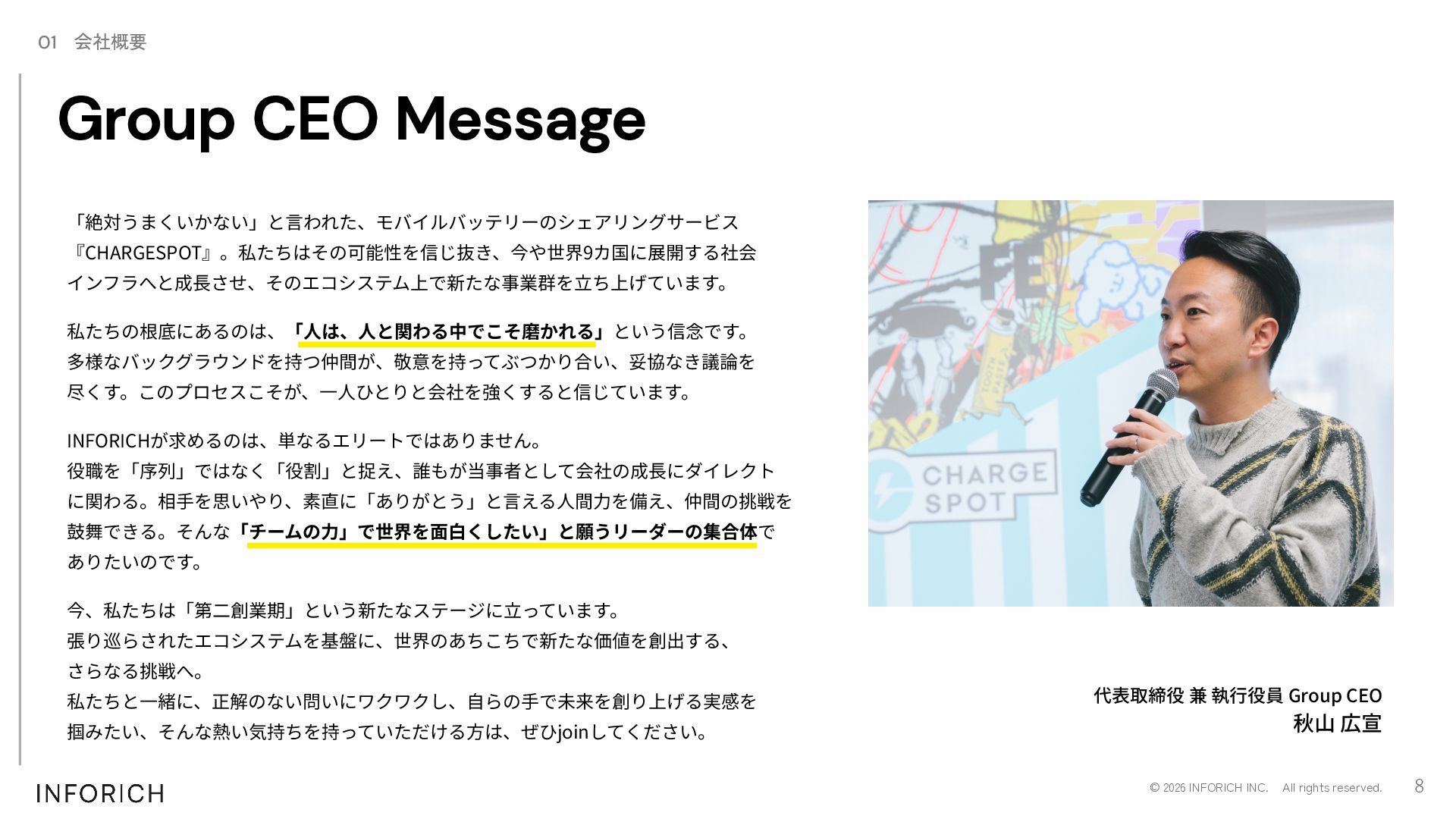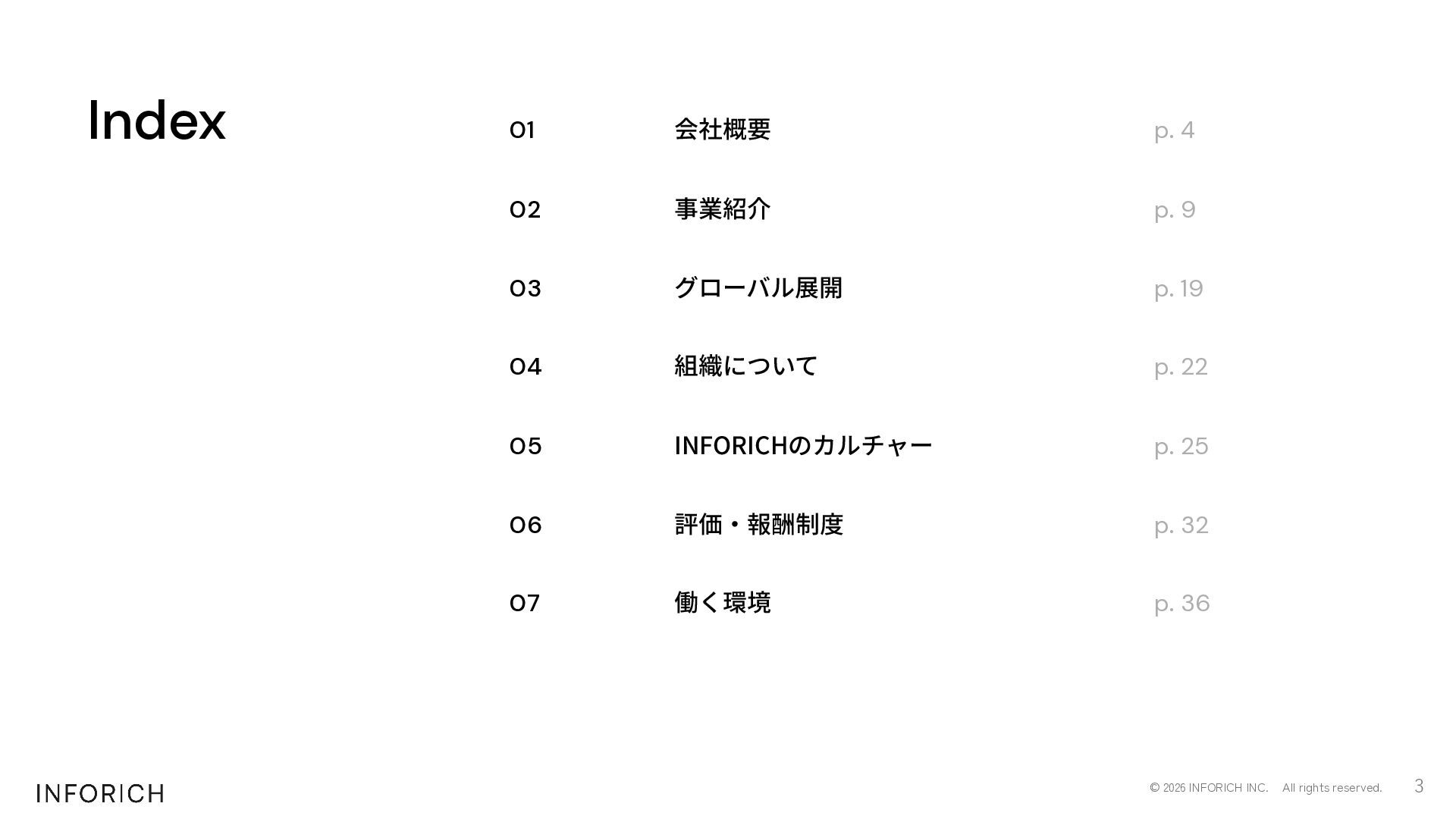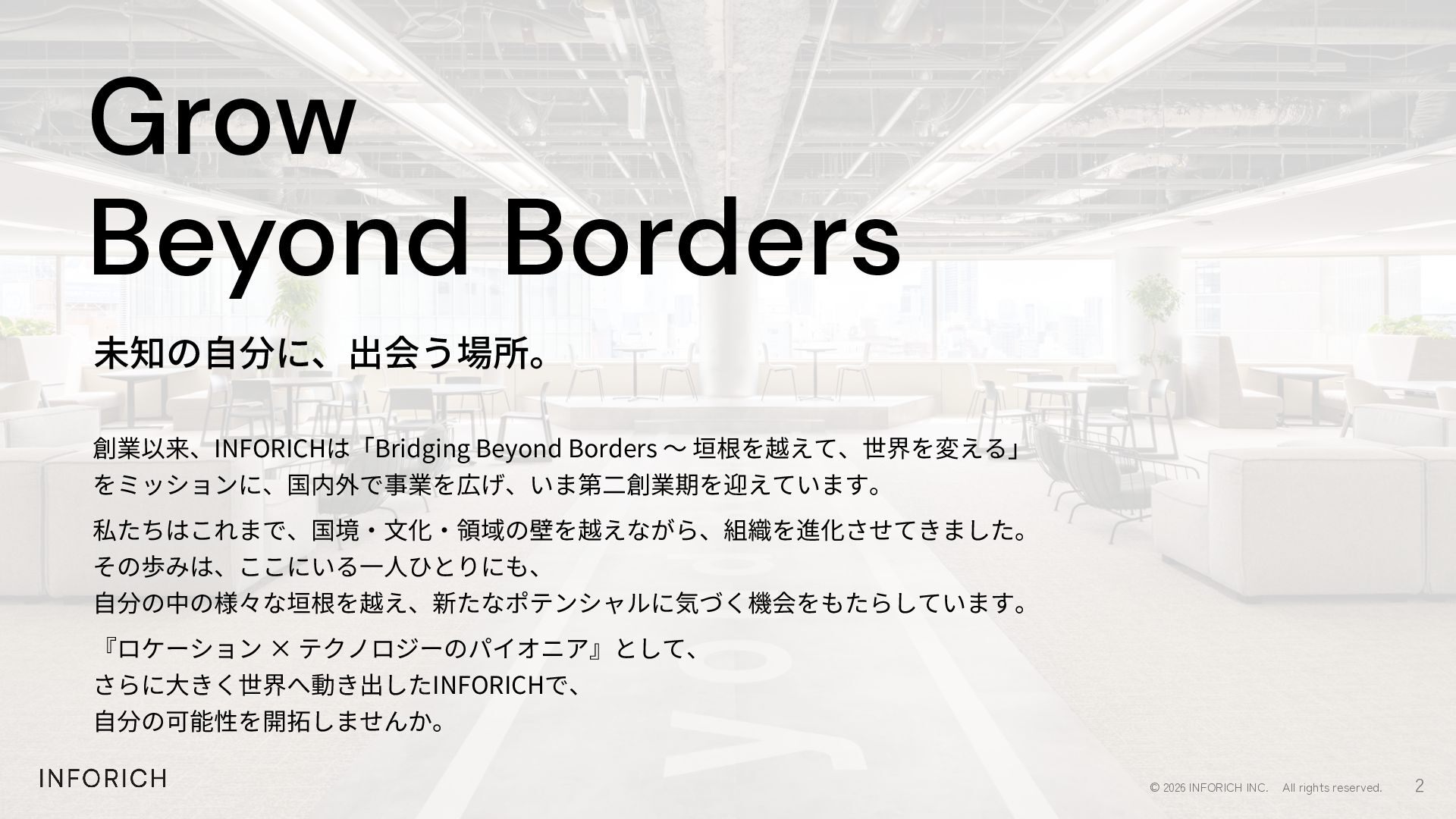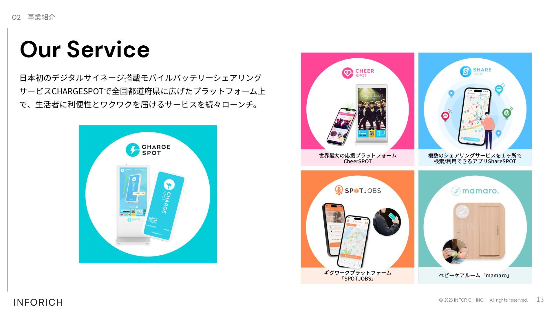 EBITDA +42% 実績 前年同期比 売上高 4Q 4,434 百万円 +37% (+1,206百万円) EBITDA 4Q 1,533 百万円 +50% (+510百万円) 営業利益 4Q 966 百万円 +76% (+417百万円) 実績 前年同期比 業績予想 達成率 売上高 14,431 +35% (+3,730 ) 92% EBITDA 4,211 +42% (+1,247 ) 95% 営業利益 2,053 +24% (+391 ) 89% © 2026 INFORICH INC. All rights reserved. 17 02 事業紹介