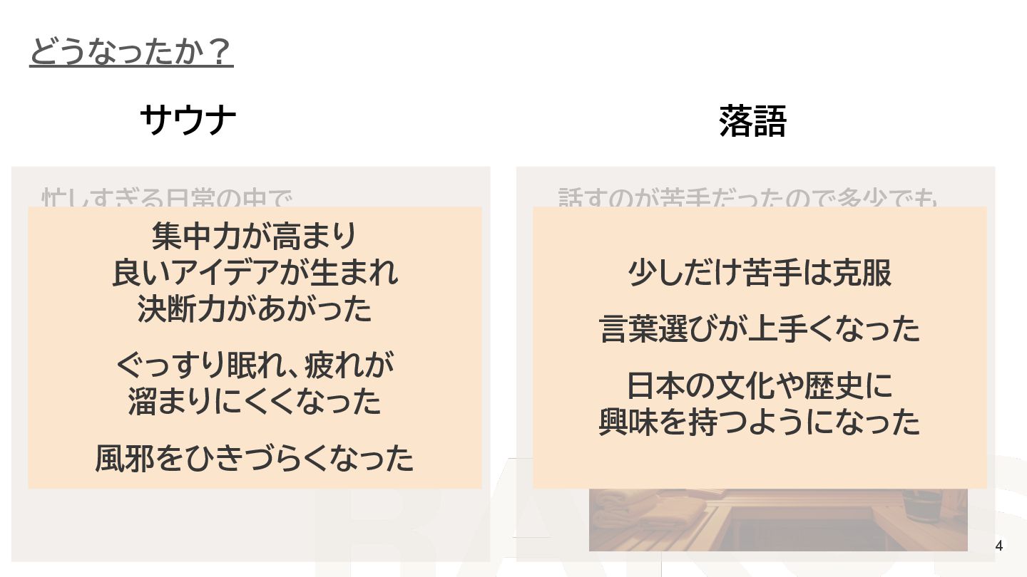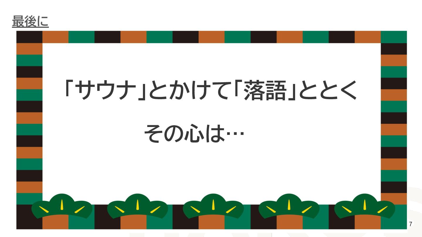 ◆LTタイトル サウナと落語で「ととのう」と「ととのえる」