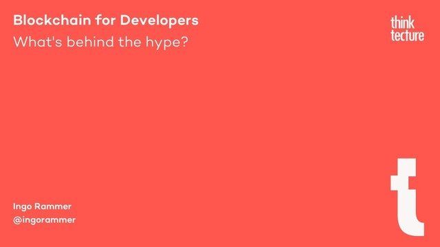 technical consulting company helping developers, architects and technical decision makers use ever-changing cutting edge dev technologies. My focus: DLT/blockchain technologies for B2B use cases; from deep down in code up to ISO TC 307 Member of Hyperledger Foundation & Enterprise Ethereum Alliance @ingorammer | [email protected] | https://thinktecture.com Ingo Rammer